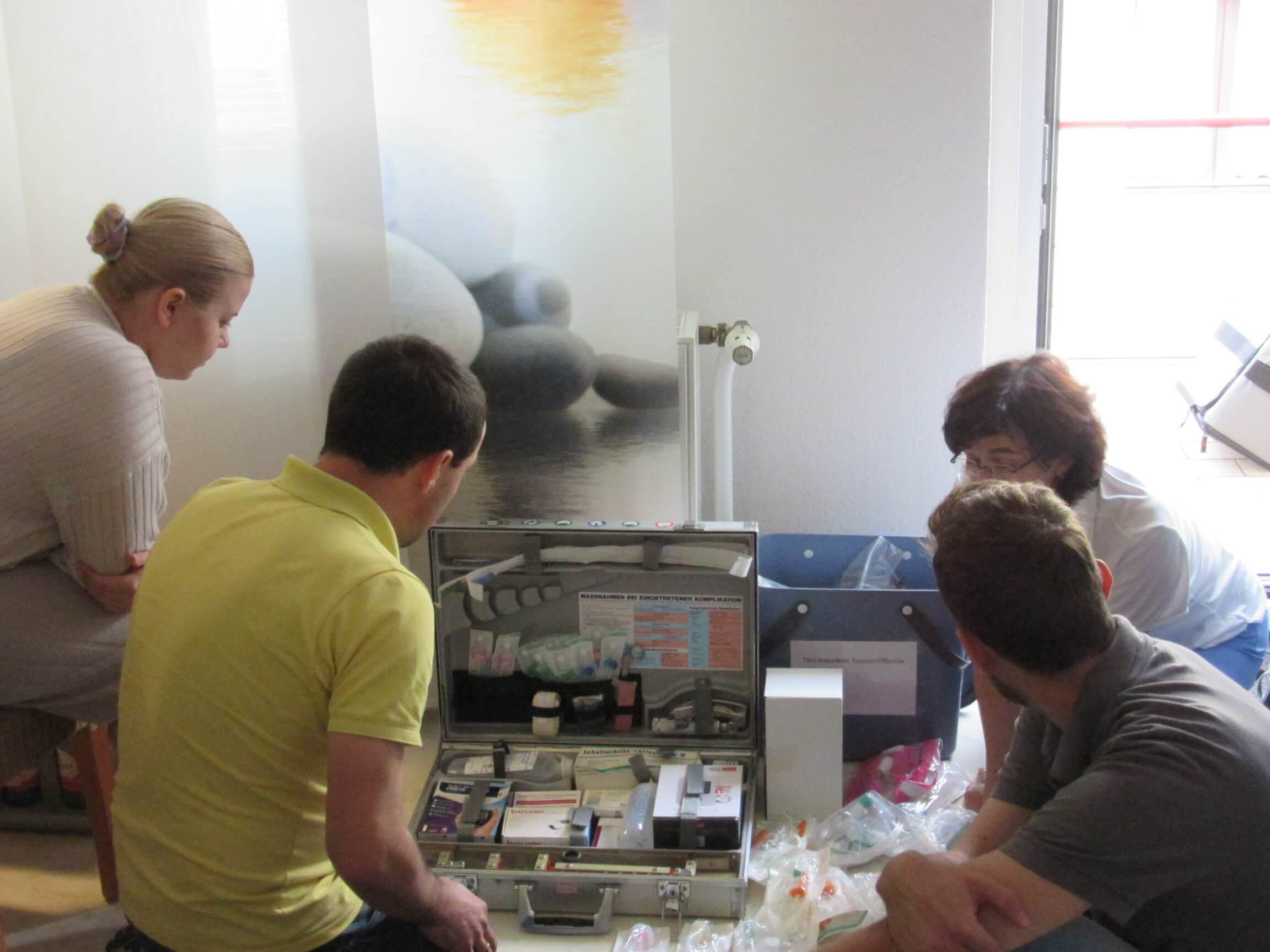 An einem Freitag hatten wir die Praxis geschlossen, um für diesen seltenen, ernsten Fall zu trainieren. Ein Seminar brachte uns auf den neuesten theoretischen Stand zu typischen Notfallsituationen in (Zahn-) Arztpraxen. Dann wurde die neu erworbene Notfallausrüstung besprochen, deren Anwendung geübt und abschließend der Ernstfall durchgespielt.